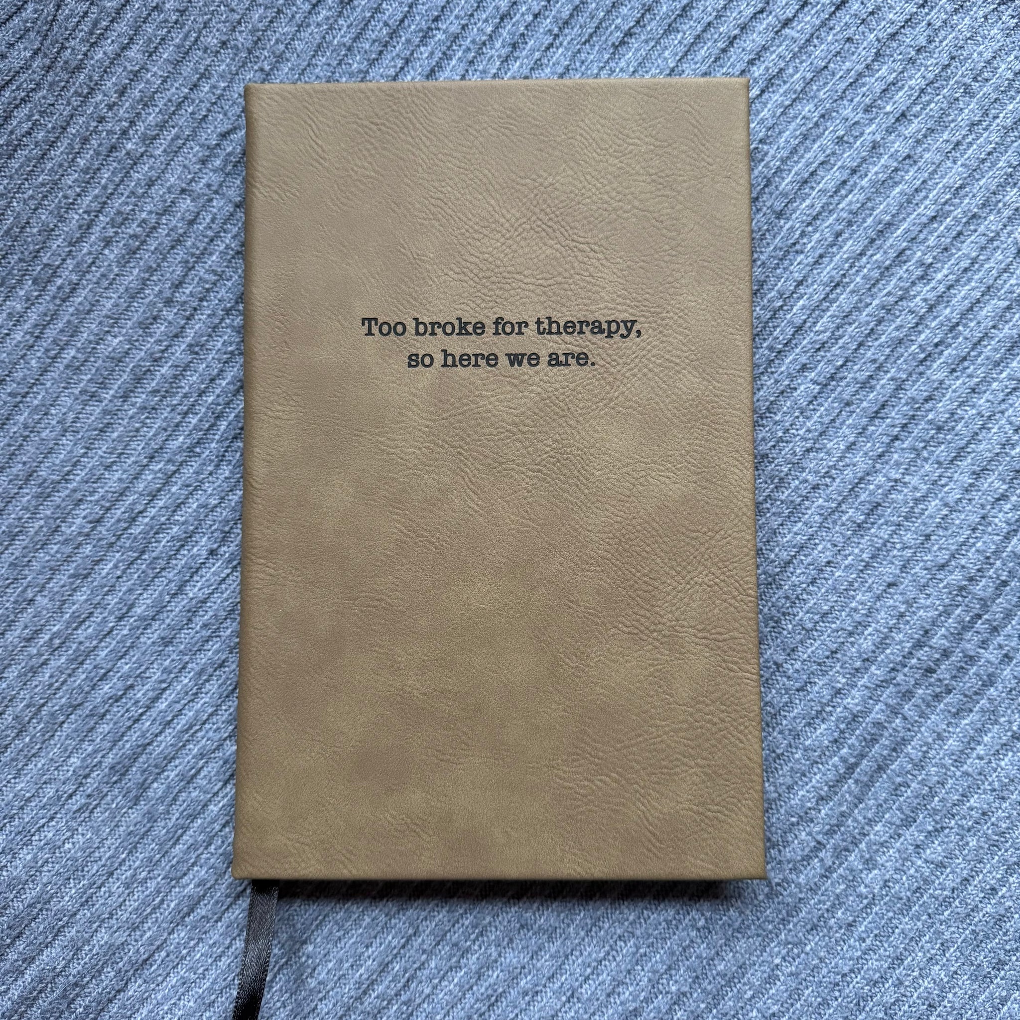 • Load image into Gallery viewer, Too Broke for Therapy Faux Leather Lined Journal